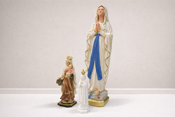 Rosari, braccialetti, statue e crocifissi, medaglie, decine, porta rosari e brucia incenso. Oggetti di devozione quotidiana, pensati per accompagnare la preghiera personale con semplicità e significato.